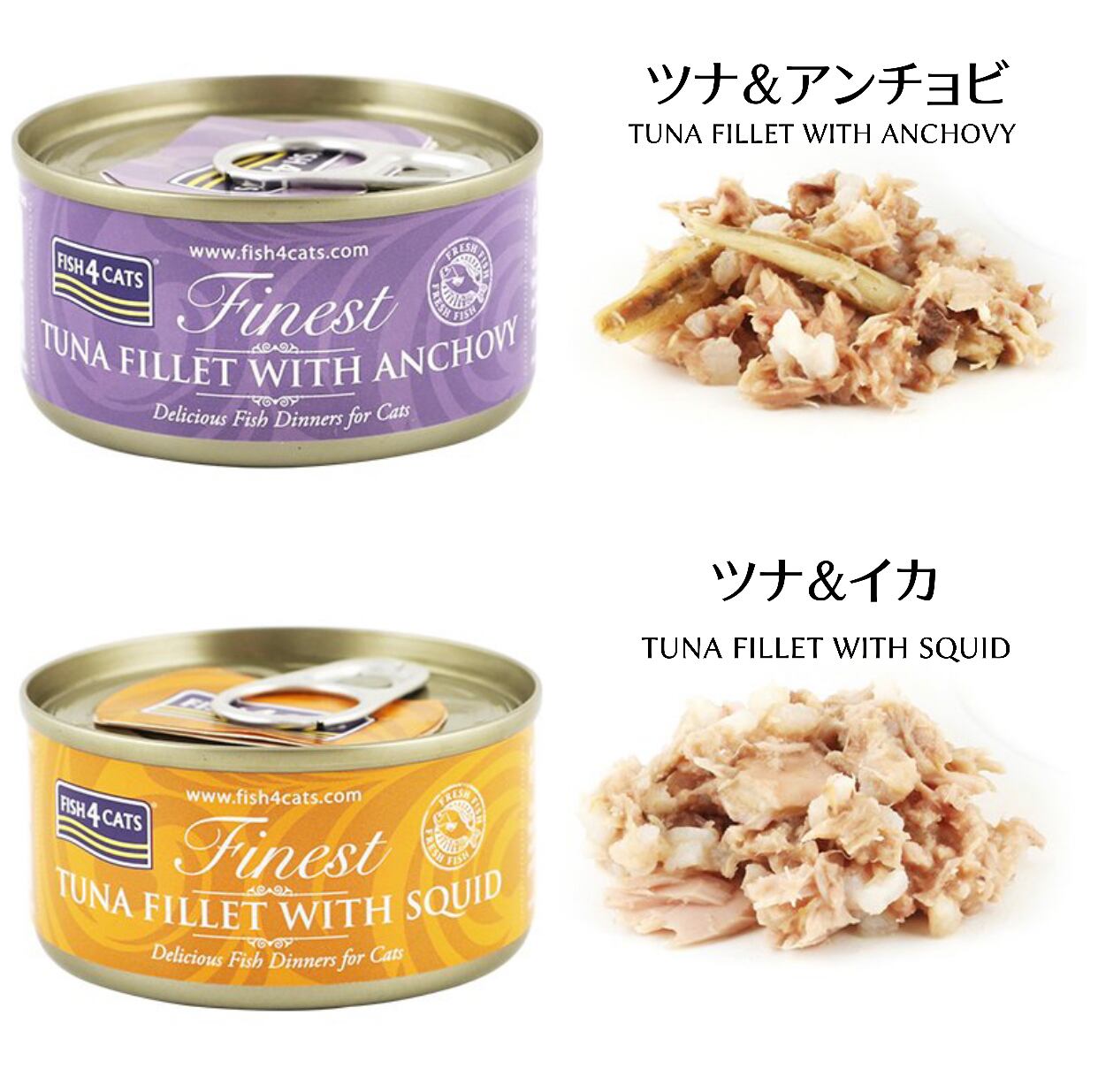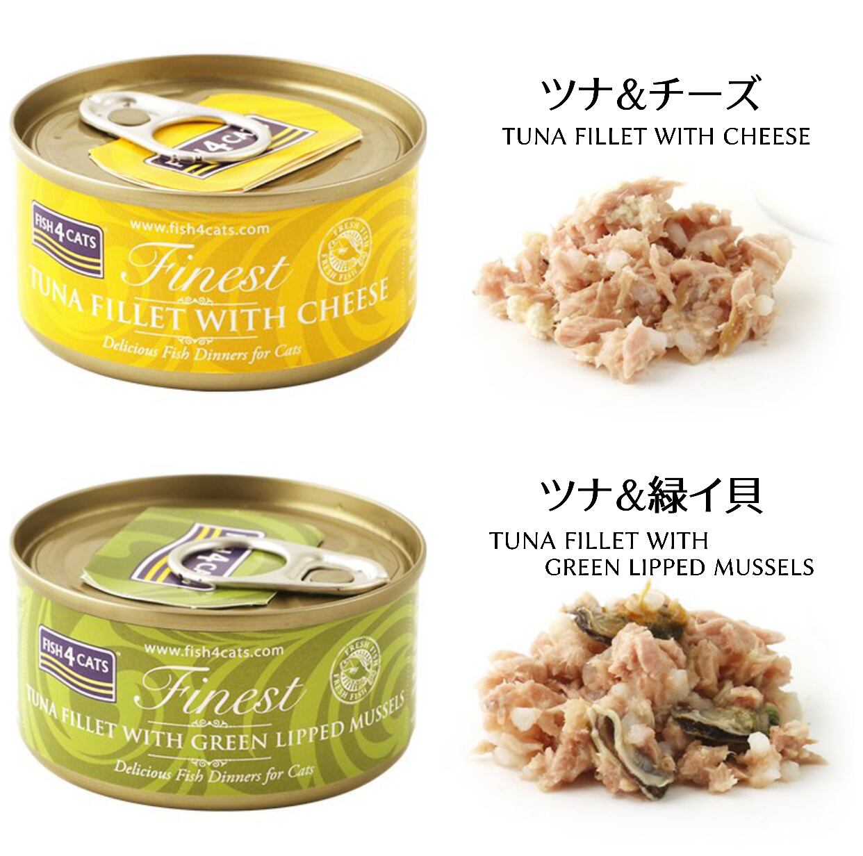 原材料を贅沢に使用し、魚を高配合したフィッシュ4キャット猫缶シリーズ。